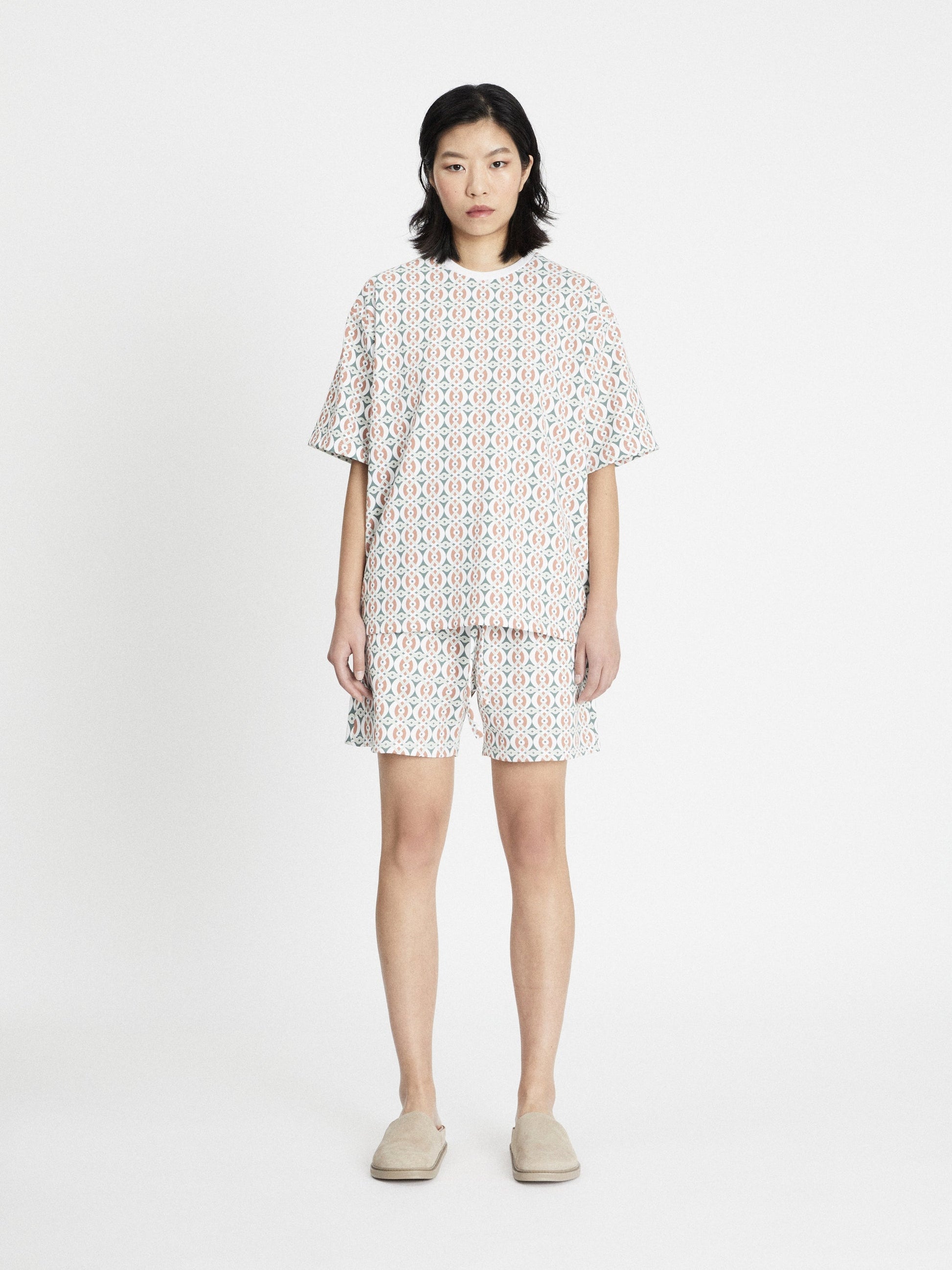 House Babylon’s double-knit sets are crafted from a heavyweight interlock jersey fabric for everyday use. This unisex set offers a fine and tailored look while maintaining the comfort of knit fabrics featuring a crew neck, and an elastic waistband with drawstring. It is made in Egypt.