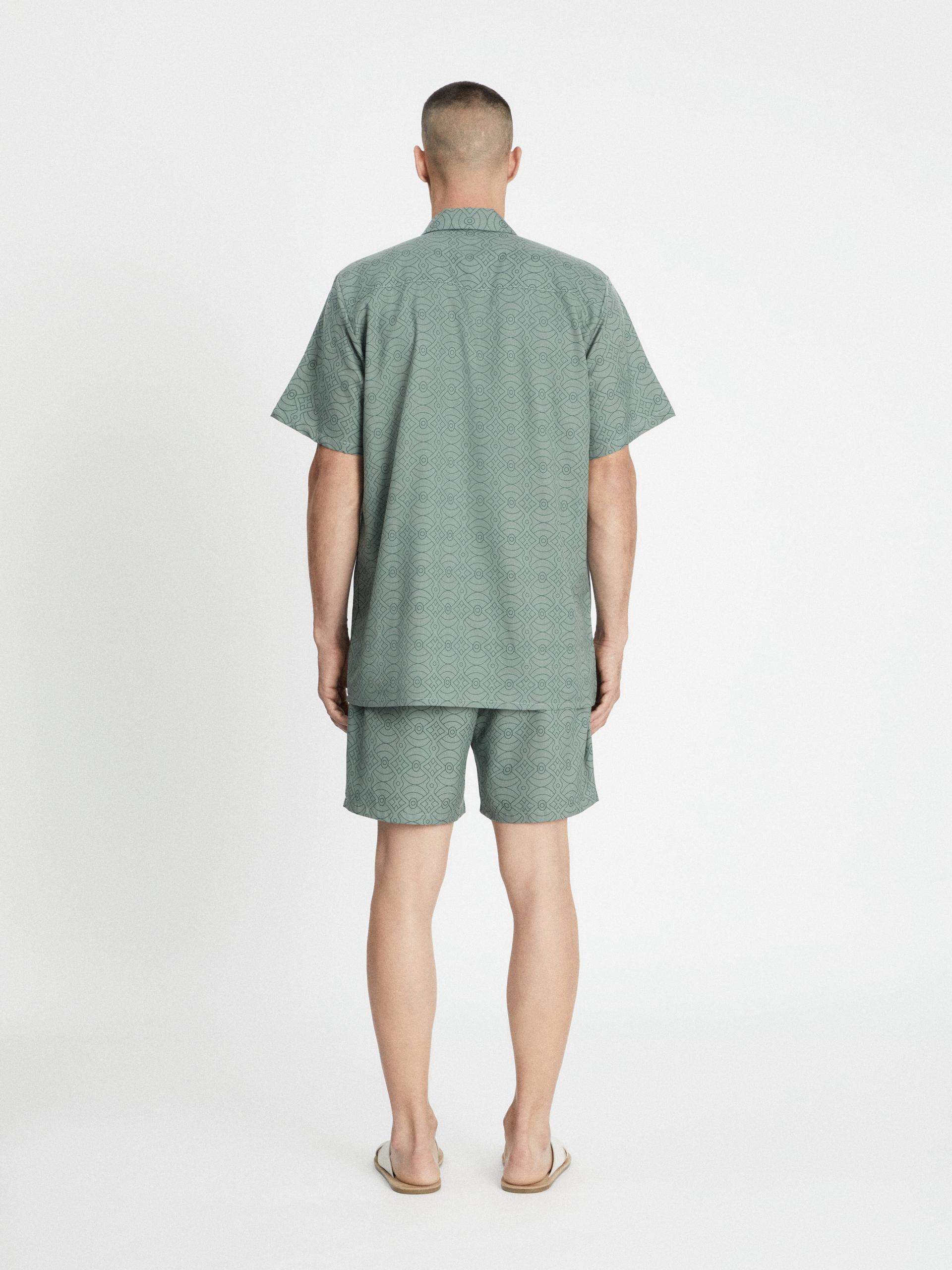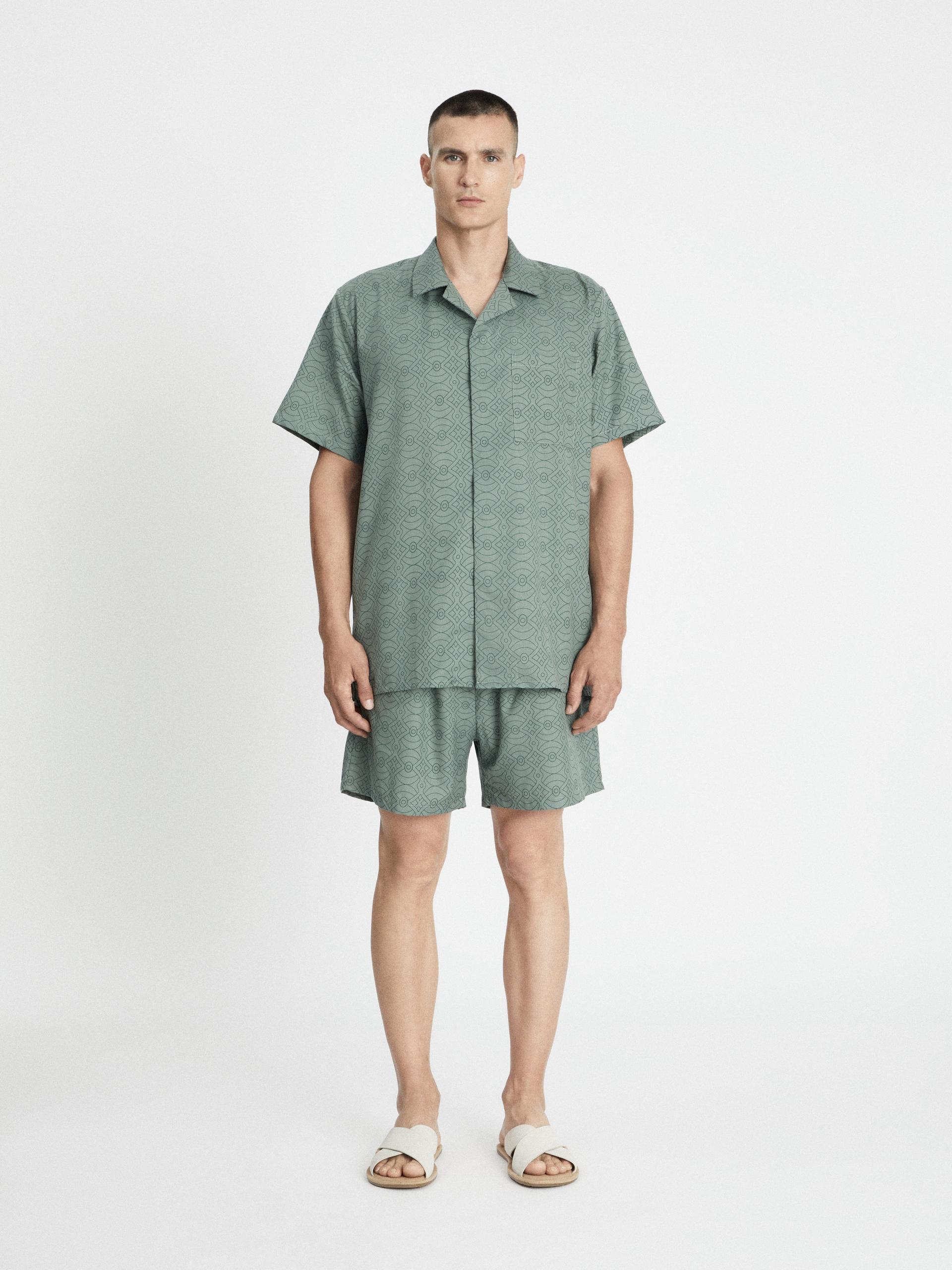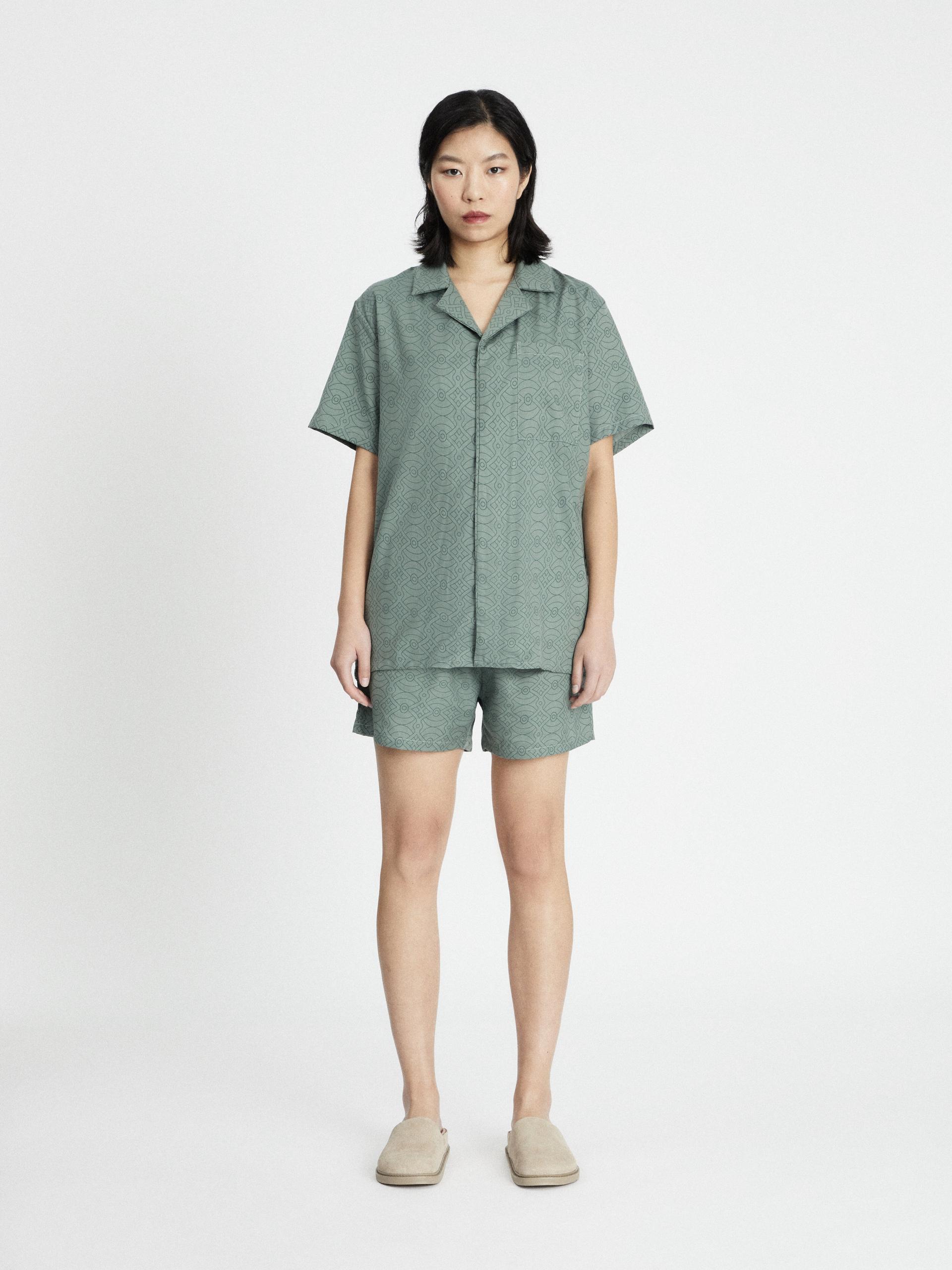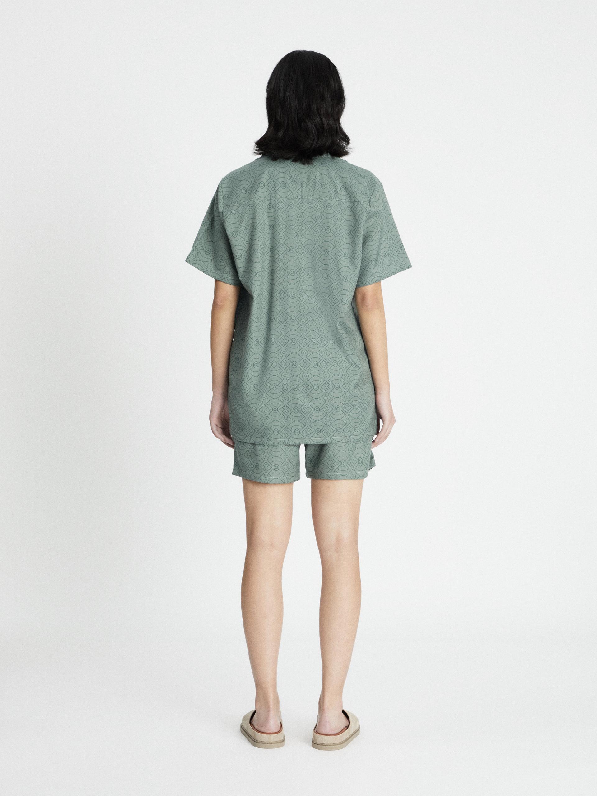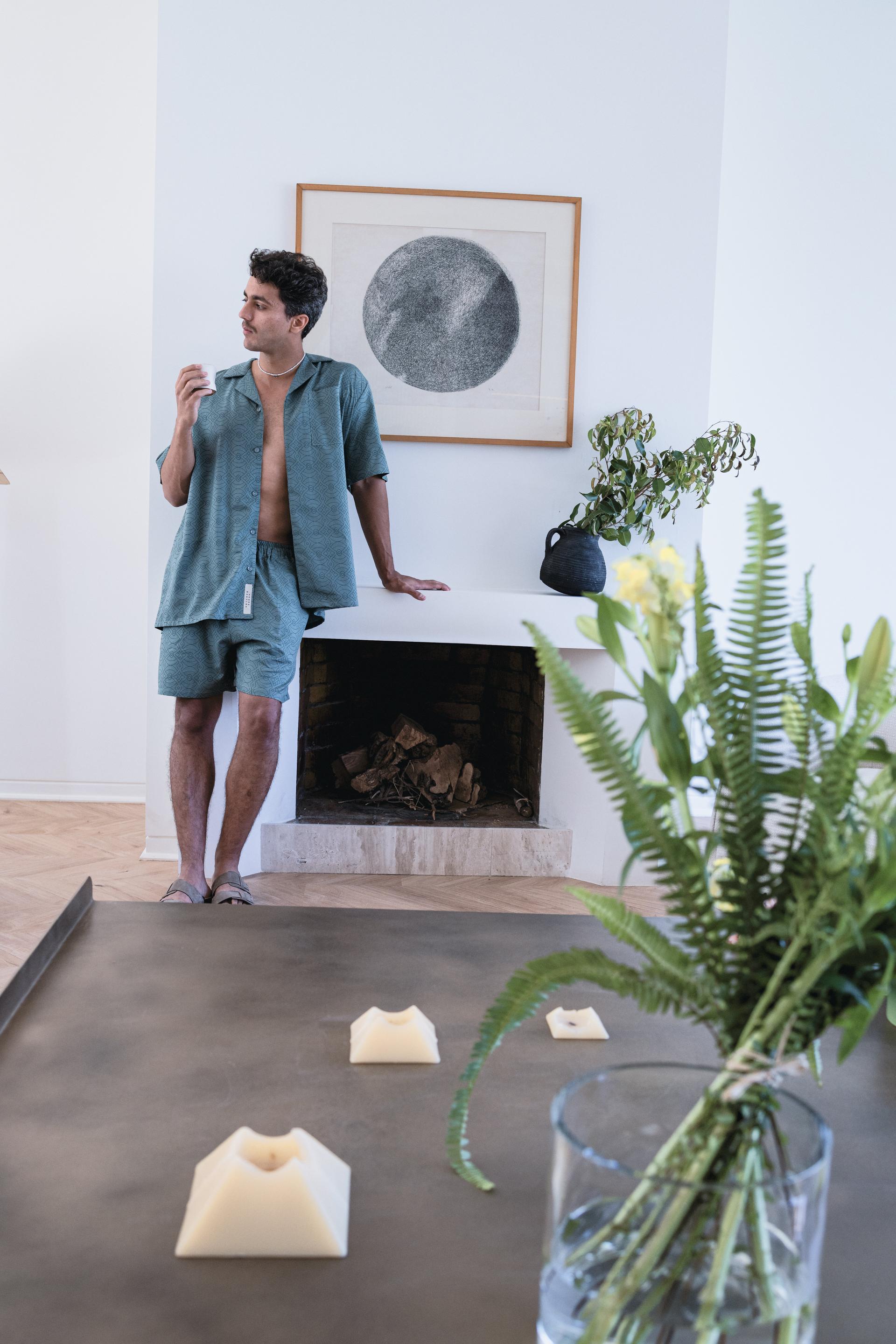 House Babylon’s tencel sets are crafted from a naturally breathable cotton tencel fabric, providing a softness akin to a silk-like feel. This airy unisex set promises to be a wardrobe staple throughout the warmer months and offers a relaxed tapered fit featuring a camp collar, two side pockets, and an elastic waistband with a drawstring. Made in Egypt.