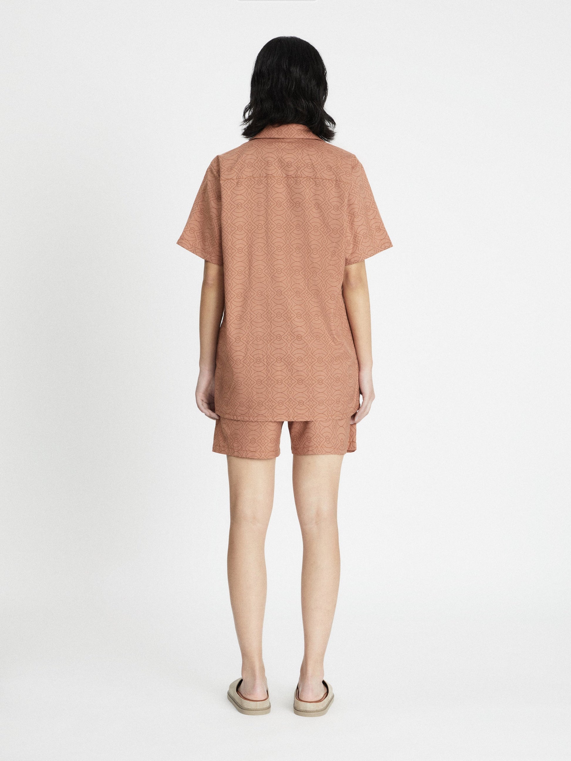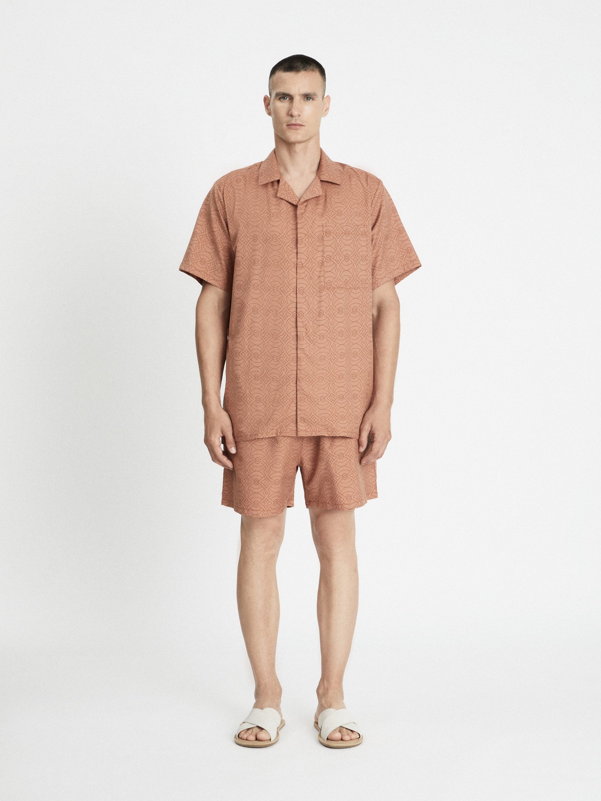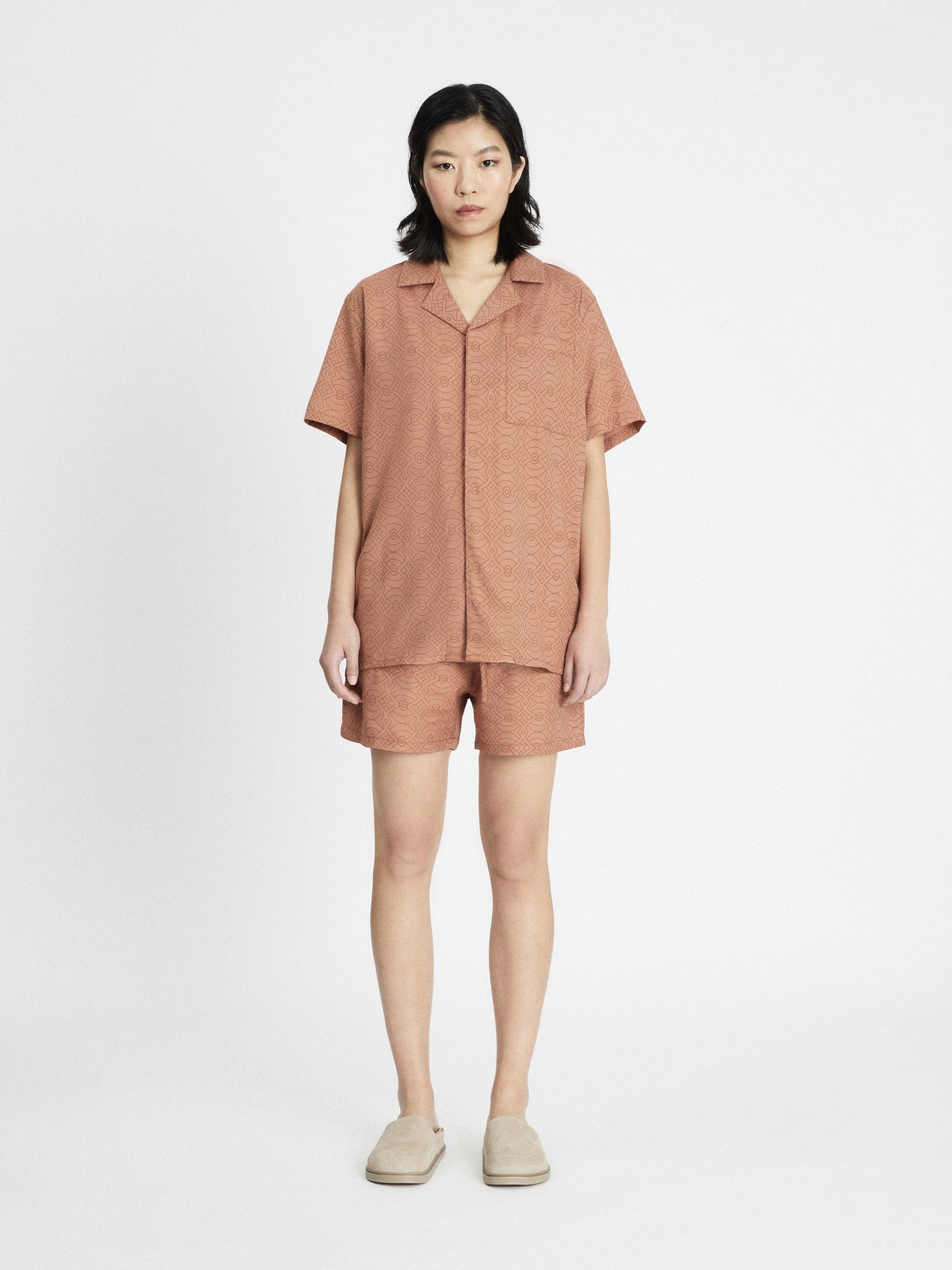 House Babylon’s tencel sets are crafted from a naturally breathable cotton tencel fabric, providing a softness akin to a silk-like feel. This airy unisex set promises to be a wardrobe staple throughout the warmer months and offers a relaxed tapered fit featuring a camp collar, two side pockets, and an elastic waistband with a drawstring. Made in Egypt.