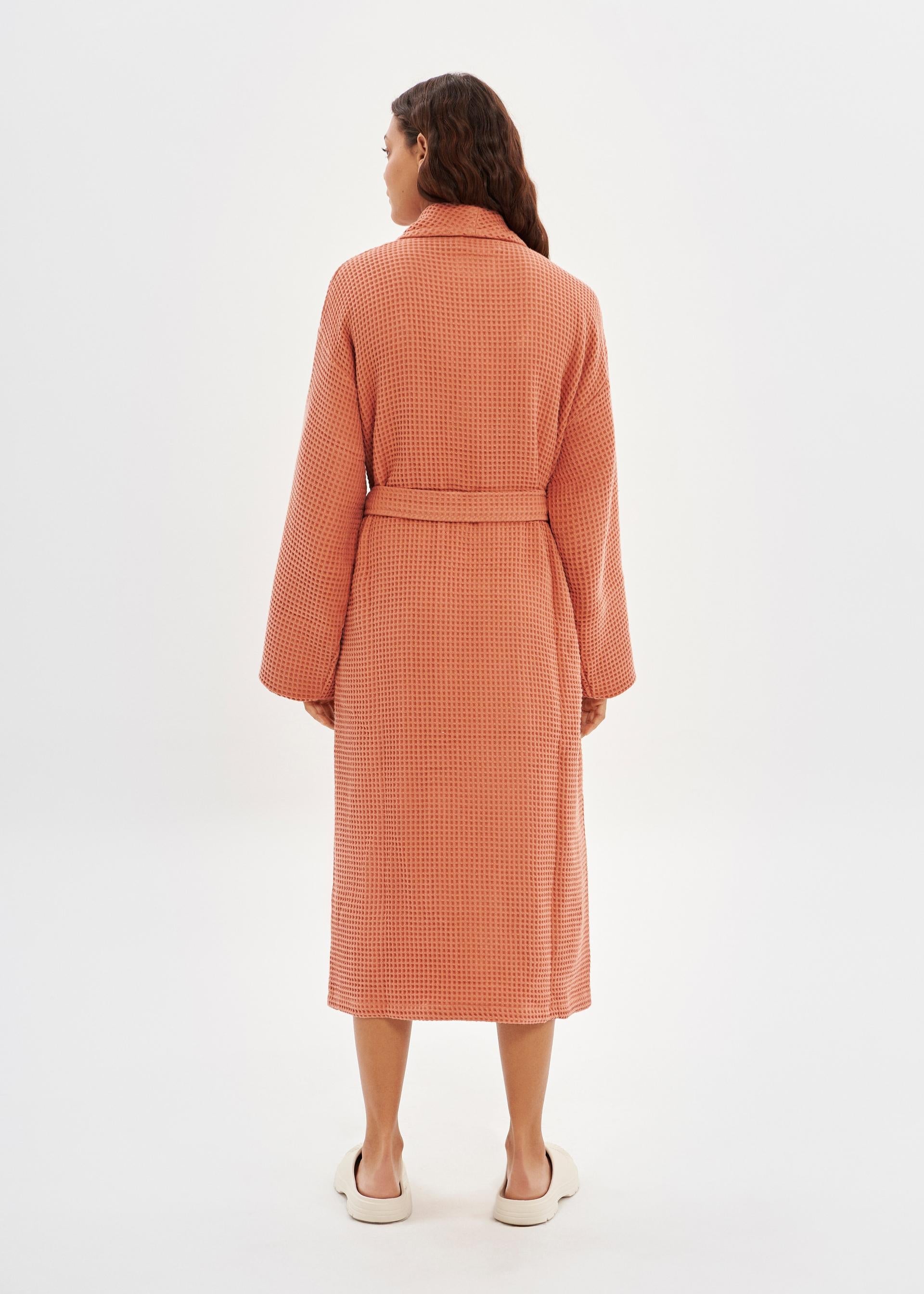House Babylon’s waffle bathrobe is crafted from organic Turkish cotton and are Oeko-Tex certified to be fully free of any harmful chemicals. The waffle bathrobe is lightweight, softly textured and woven at 230 grams per square meter. This unisex bathrobe offers a relaxed fit featuring a lapel, a removable belt and capacious pockets. Made in Turkey.