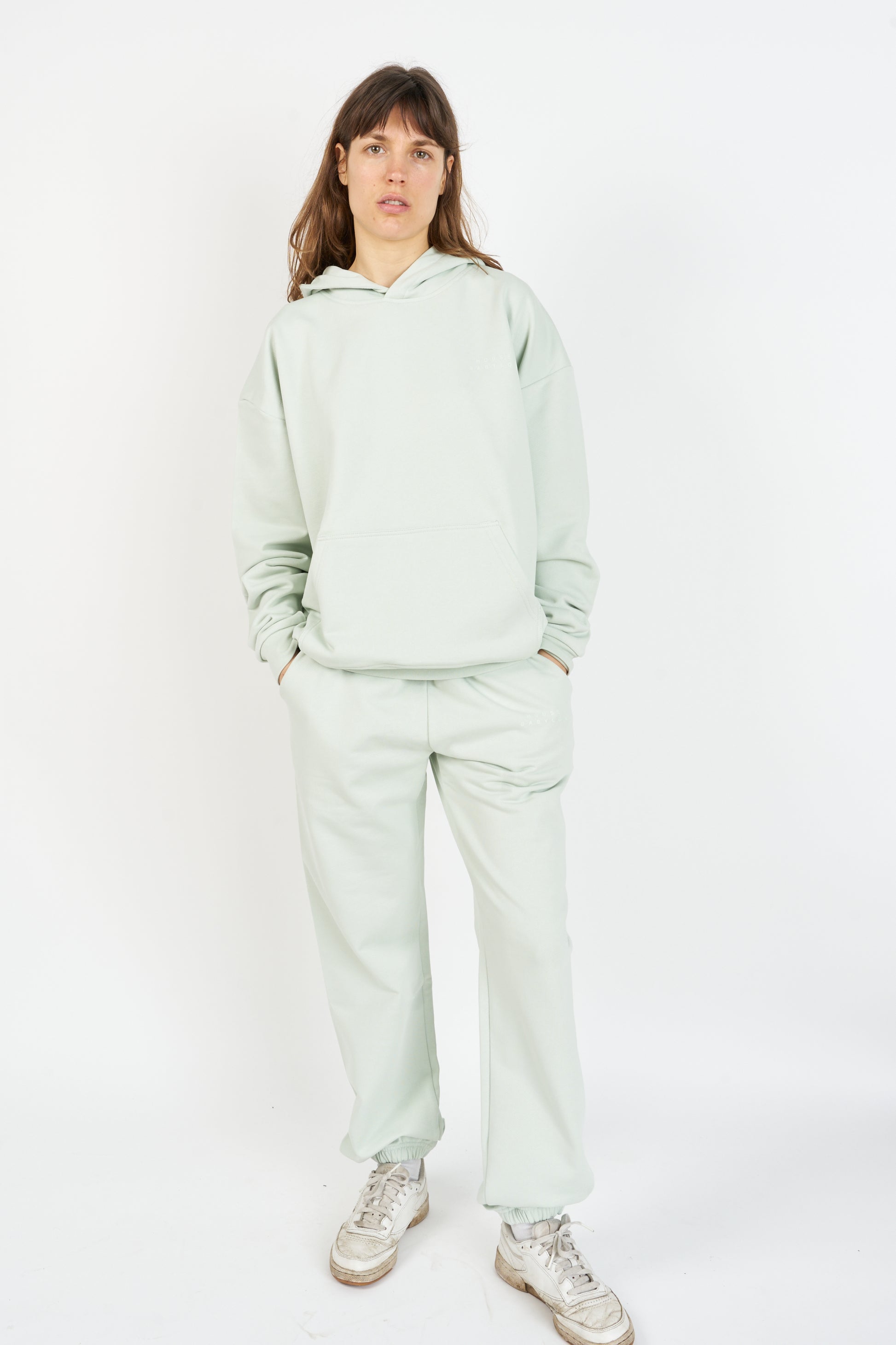 House Babylon’s oh-so-soft loungewear set is designed with comfort in mind, easy to dress up or down.The oversized loungewear set is made from 100% Turkish Cotton. It is a medium-weight fabric, clean cut from a soft touch French Terry and a finishing that provides extra softness. The hooded sweatshirt and pants feature a subtle screen-printed logo at the chest and thigh.