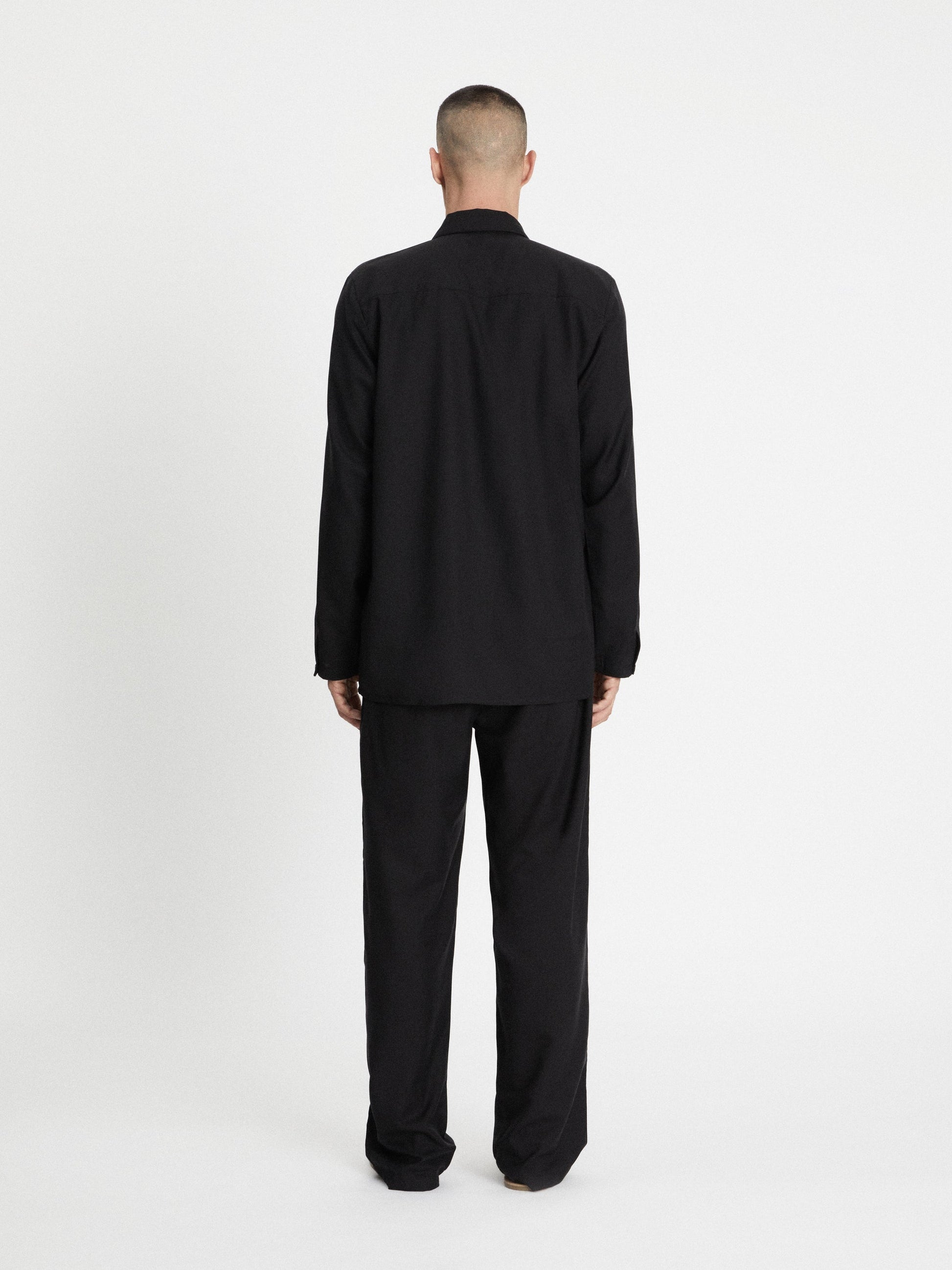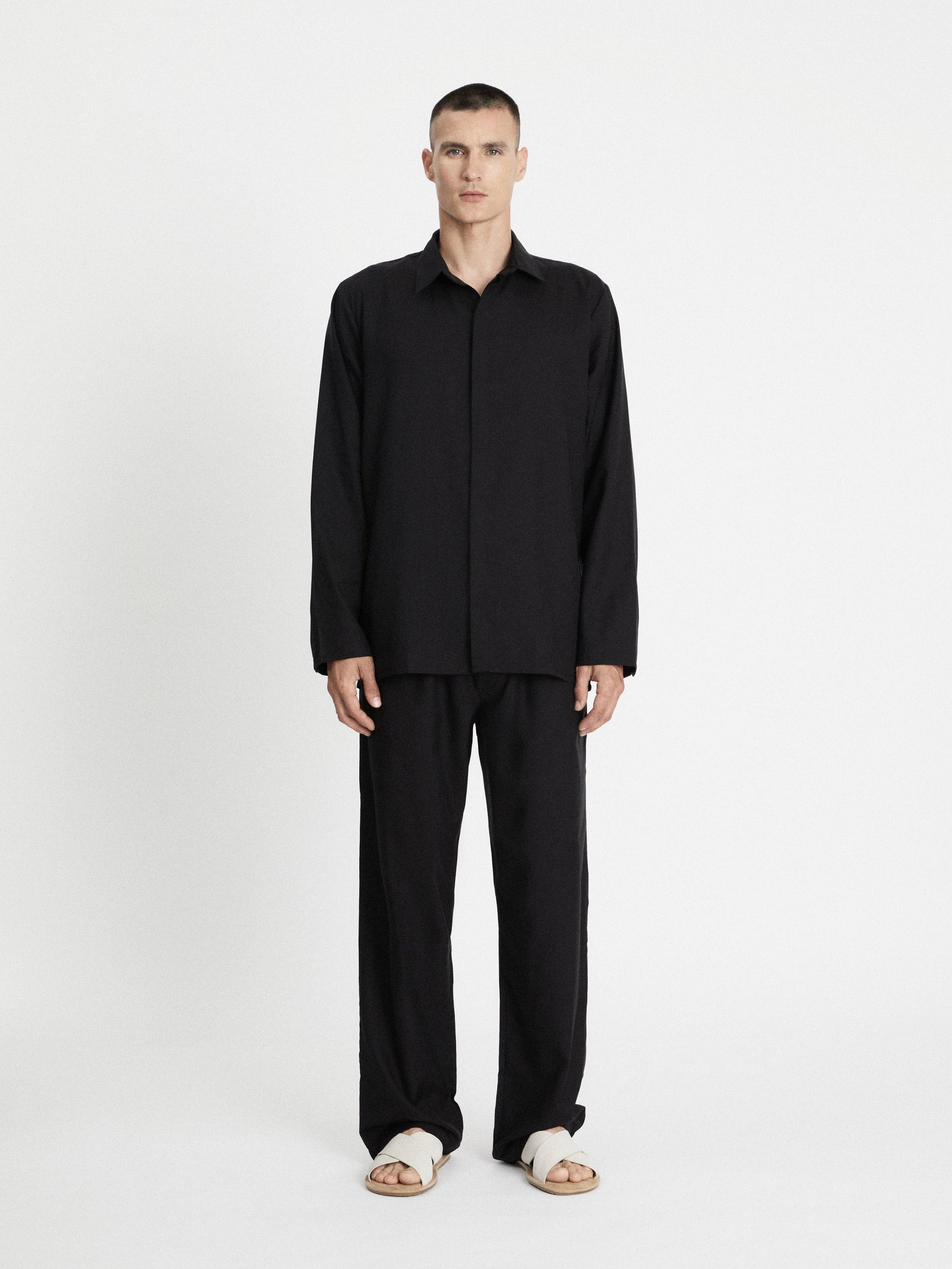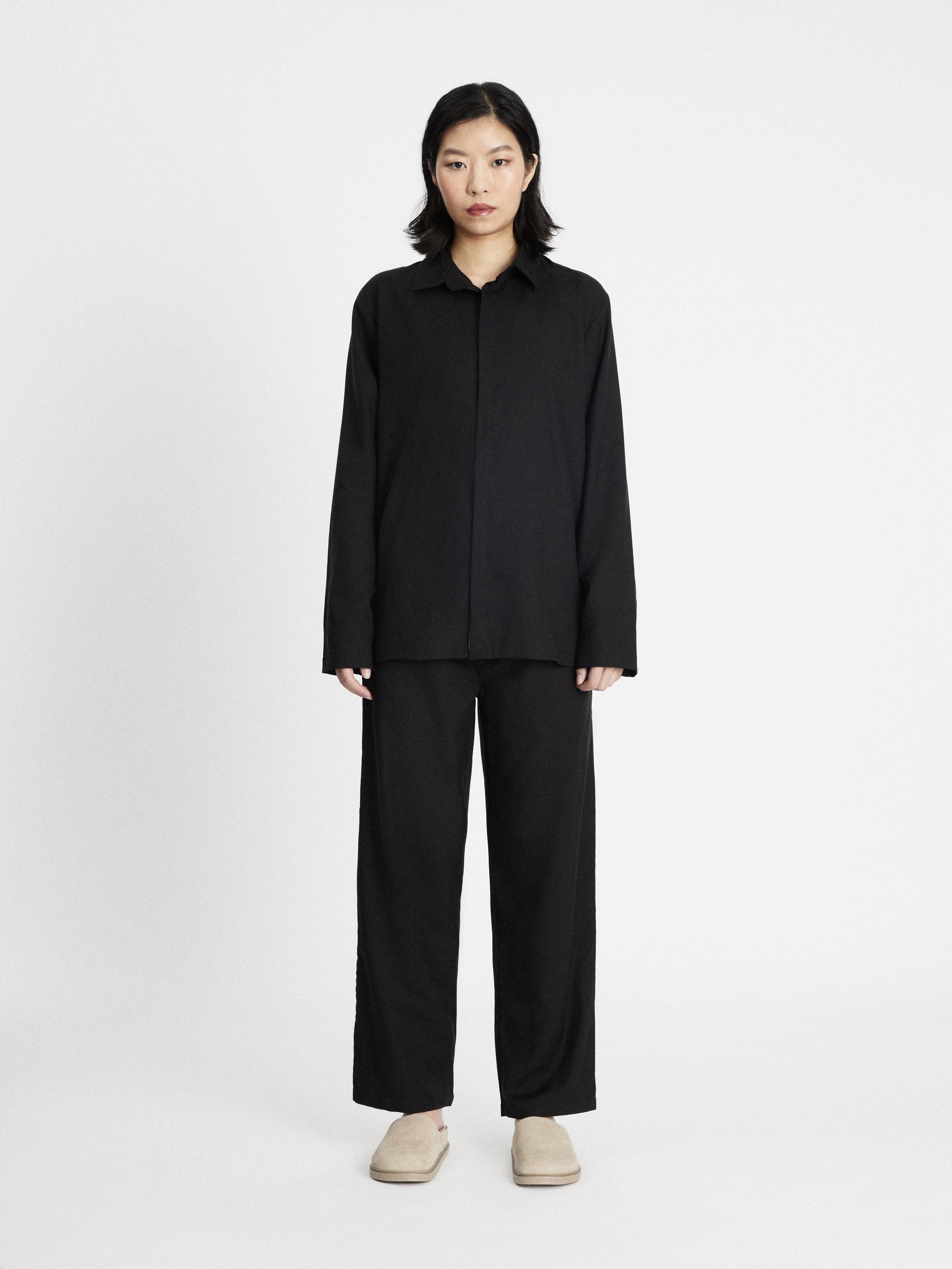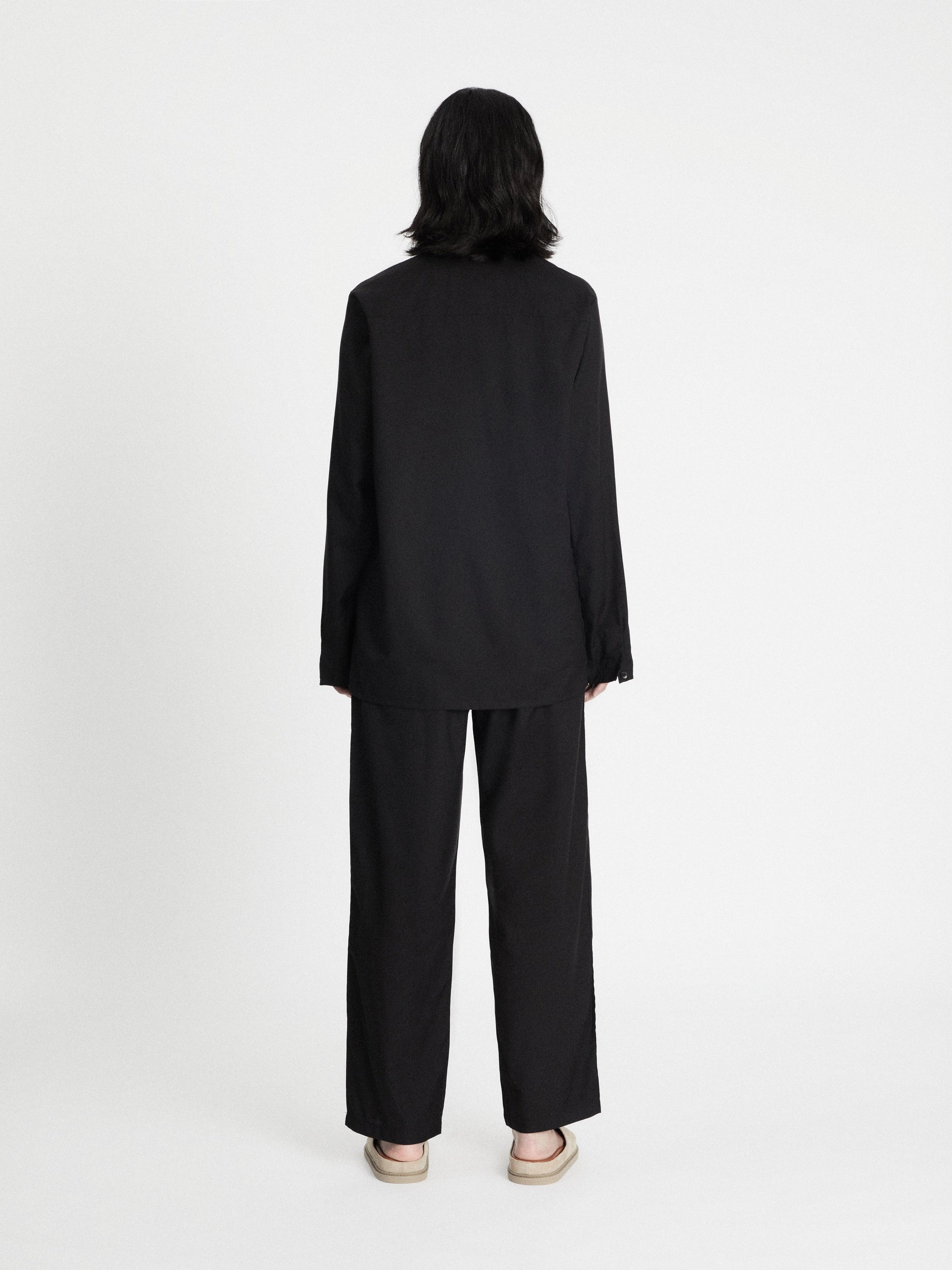 House Babylon’s tencel sets are crafted from a naturally breathable cotton tencel fabric, providing a softness akin to a silk-like feel. This airy unisex set promises to be a wardrobe staple throughout the warmer months and offers a relaxed tapered fit featuring a spread collar, two side pockets, and an elastic waistband with a drawstring. Made in Egypt.