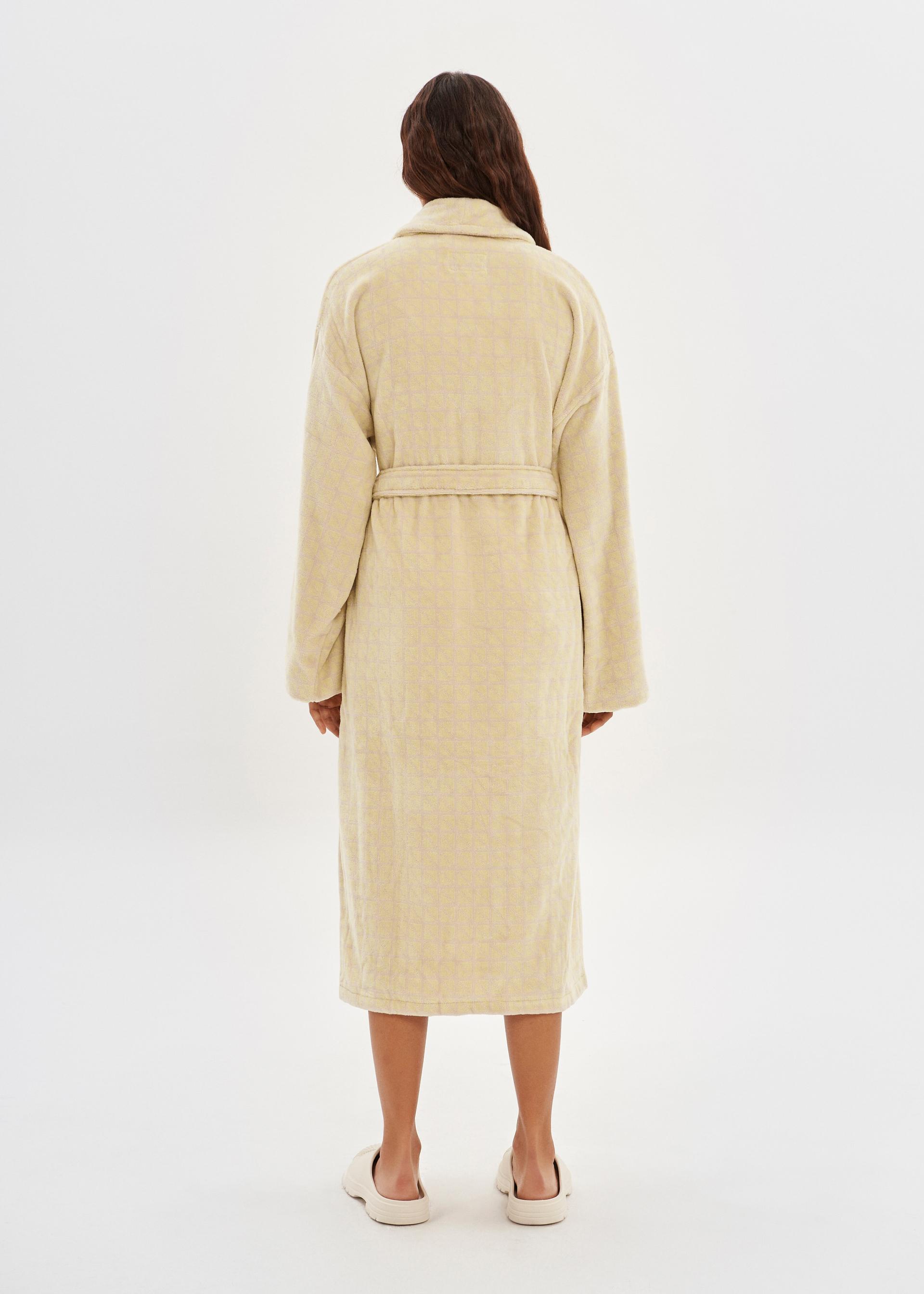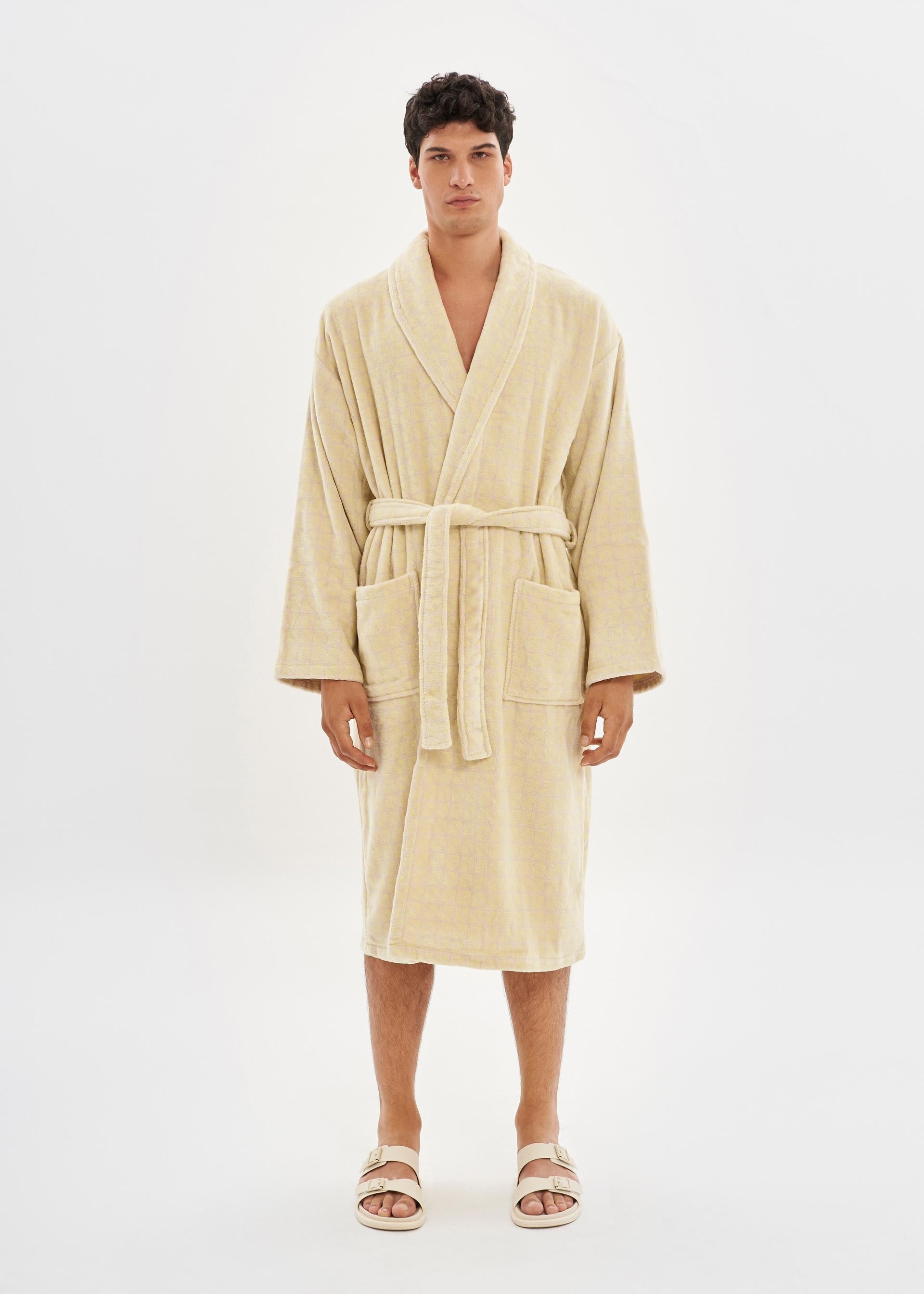 House Babylon’s bathrobe is crafted from 100% cotton to be fully free of any harmful chemicals. The terrycloth bathrobe is made of 400 GSM long cotton fibers for maximum fluffiness and absorbency. This unisex bathrobe offers a relaxed fit featuring a lapel and capacious pockets. Made in Turkey.